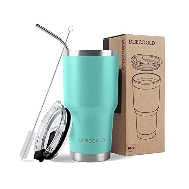 Dloccold 30oz Tumbler Double Wall Stainless Steel Vacuum Insulated Coffee Travel Mug With Lid And Straw Tiffany Blue 30oz Walmart Com
